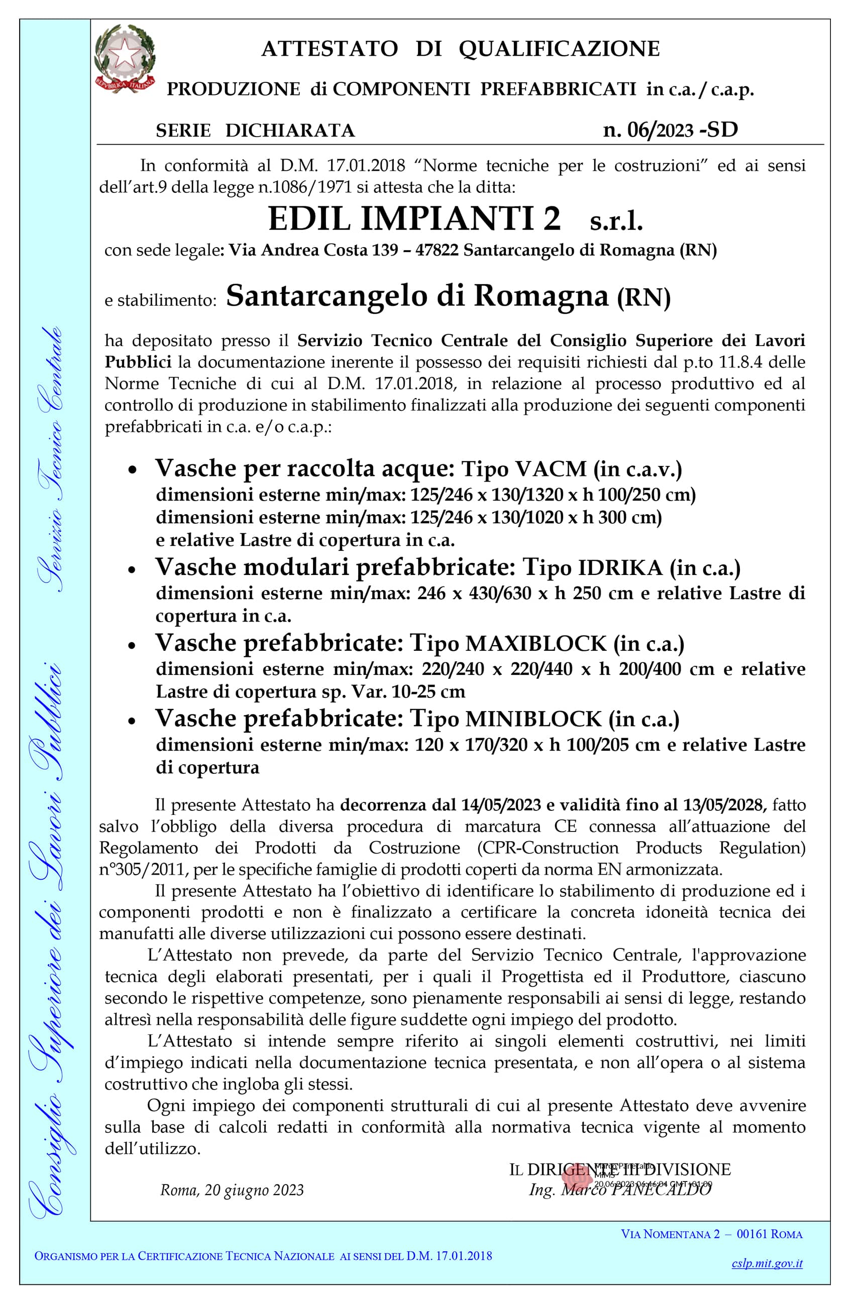 Gli standard produttivi sono il massimo che il mercato può offrire, in quanto oltre alla certificazione di sistema (UNI EN ISO 9001 e ISO 45001) e l'attestazione di Conformità (con la marcatura CE dei prodotti regolamento 305/11) è tra le poche aziende del settore che produce i propri manufatti in SERIE DICHIARATA avendo conseguito l'Attestato di Qualificazione presso il Servizio Tecnico Centrale del Consiglio Superiore dei Lavori Pubblici (p.to 11.8.4 del DM 17.01.2018). Un'Azienda Certificata significa mantenere un Sistema Gestionale e Organizzativo conforme a specifiche Norme di riferimento (Standard), riconosciute a livello internazionale in funzione di un Accreditamento. Adottare un Sistema Gestionale ed Organizzativo significa, quindi, definire gli obiettivi raggiungibili dall'organizzazione orientandola al loro conseguimento, definendo criteri e modalità di lavoro, ovvero predisponendo ed applicando procedure, istruzioni di lavoro e sistemi di registrazione coerenti e compatibili con lo scopo che l'azienda ha deciso di perseguire.