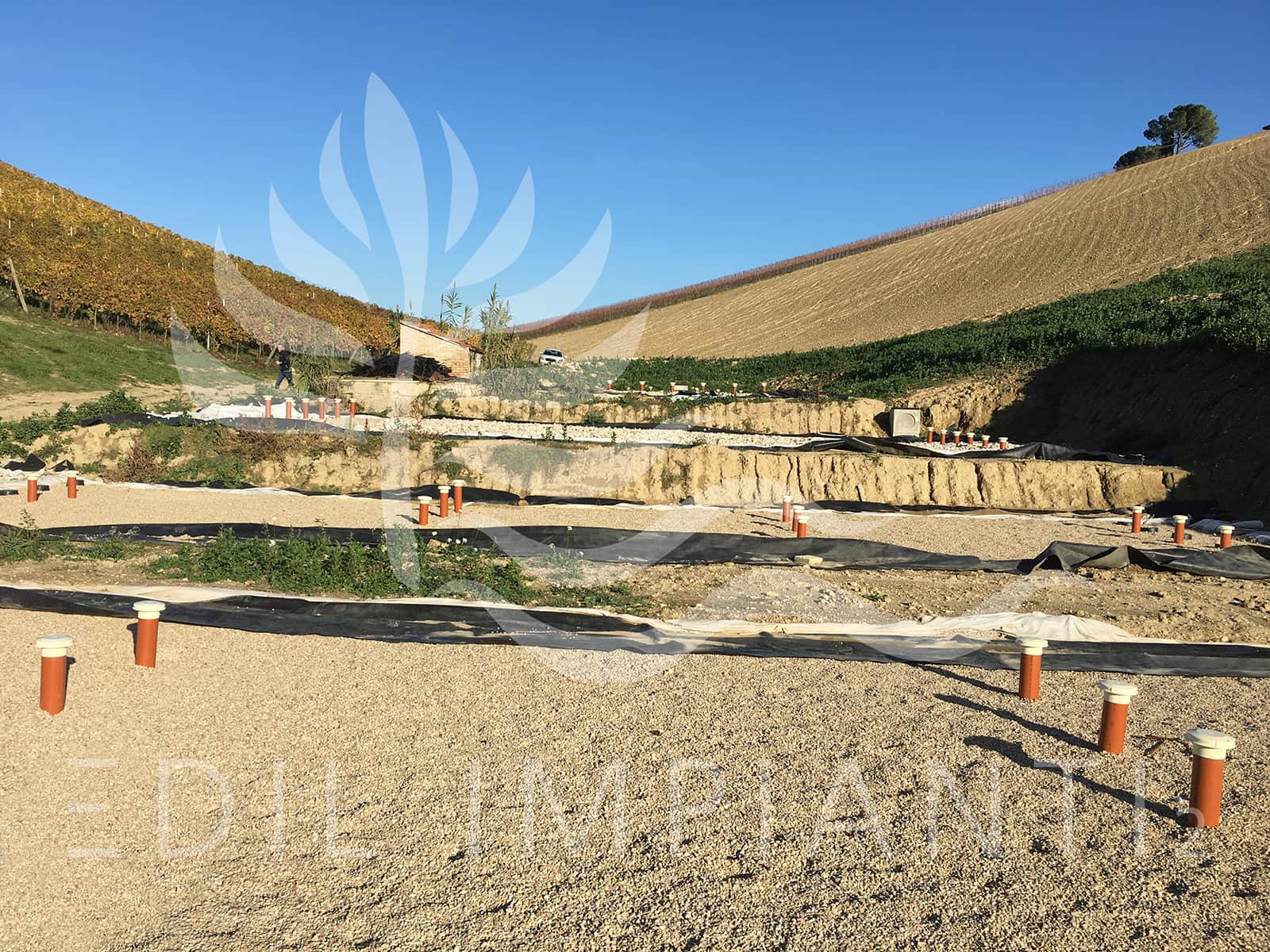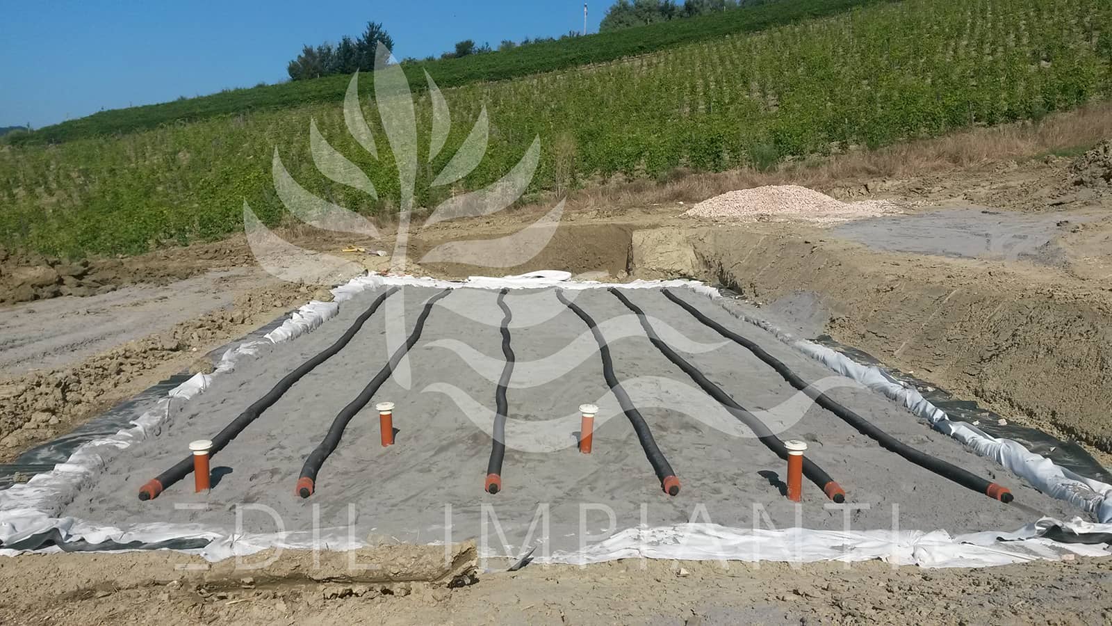 Questo sistema è costituito essenzialmente da un bacino le cui pareti laterali e il fondo sono impermeabilizzati con adeguati teli di rivestimento.